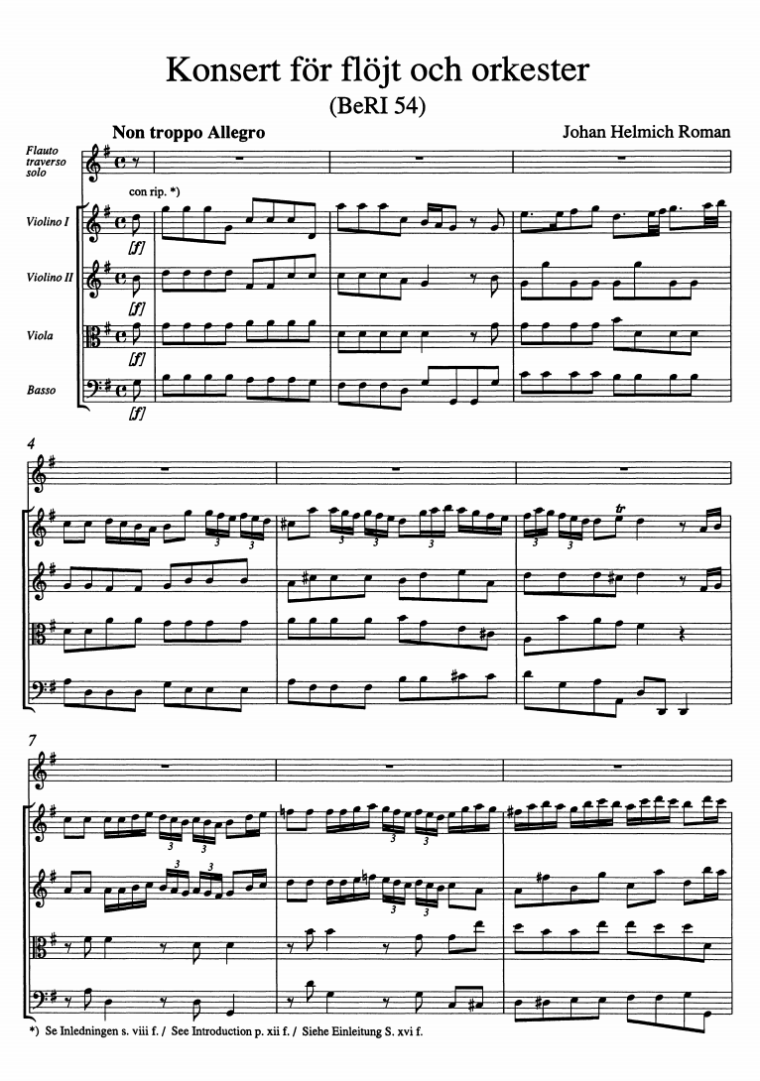Johan Helmich Roman (1694 - 20 novembre 1758): Concerto in sol maggiore per flauto e orchestra BeRi 54. Lisa Beznosiuk, flauto; Orchestra of the Age of Enlightenment, dir. Anthony Halstead.