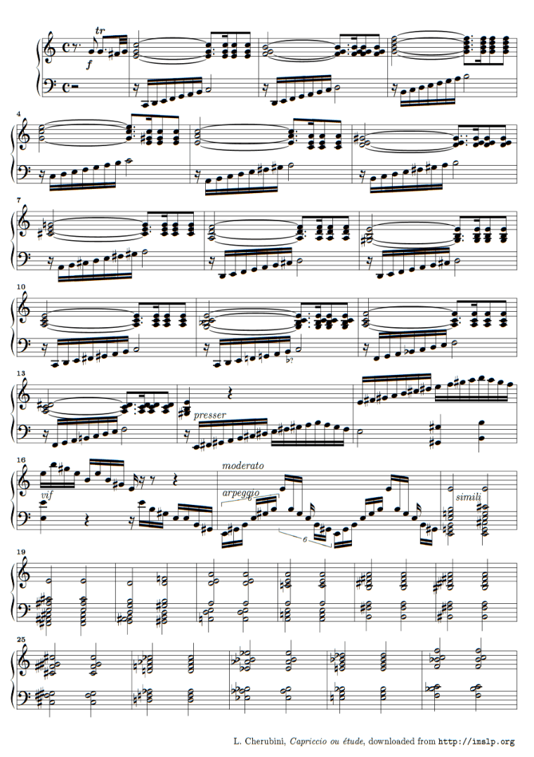 Luigi Cherubini (14 settembre 1760 - 1842): Capriccio ou Étude in do maggiore per fortepiano (1789). Pietro Spada.