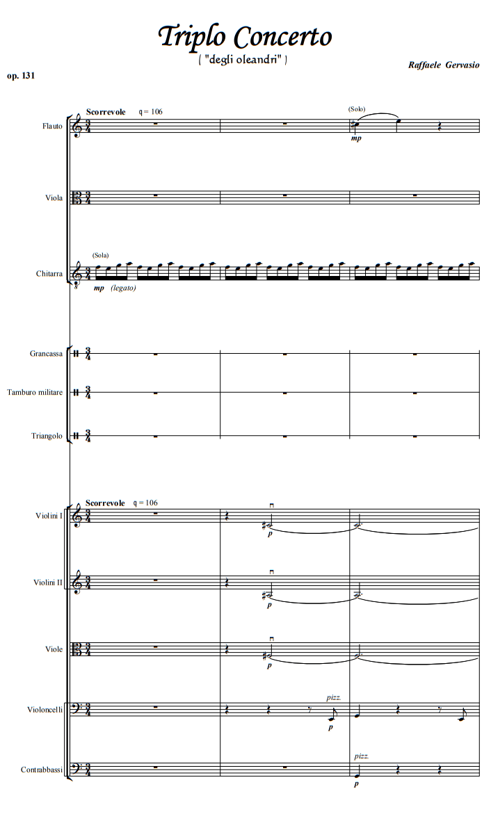 La trama musicale è densa, con passaggi rapidi che richiedono grande coordinazione all’ensemble. C’è un forte senso di moto perpetuo, dove l’energia ritmica non si placa. Le frasi vengono scambiate rapidamente, mantenendo la natura “a quattro” del concerto. Inframezzate all’energia principale, compaiono brevi momenti di maggiore cantabilità o di minore intensità, che fungono da respiro prima di reintrodurre la spinta motoria: questi contrasti dinamici e ritmici sono fondamentali per evitare la monotonia del tempo veloce.