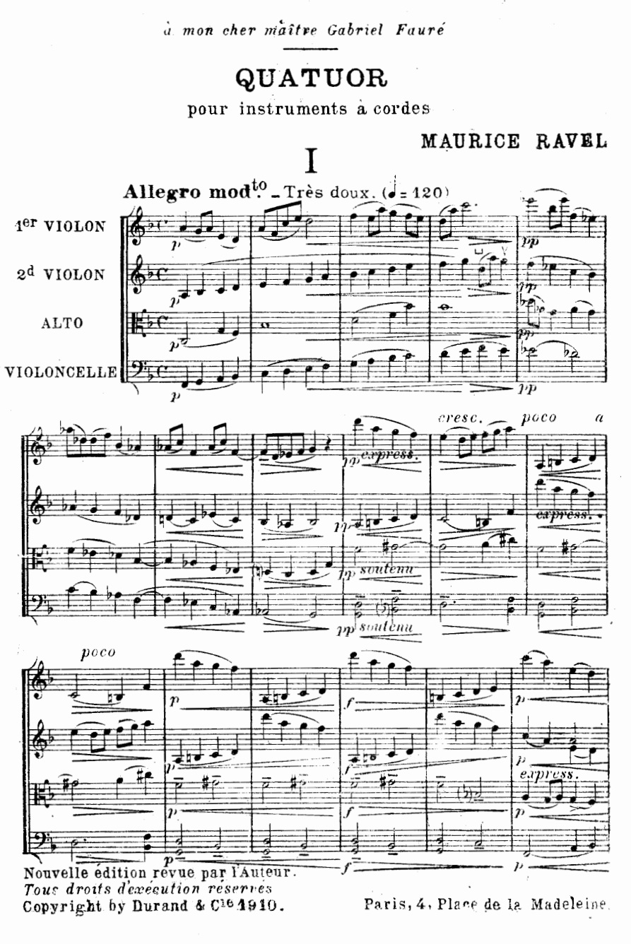 Il Quartetto si apre in un’atmosfera di ingannevole serenità: il primo violino introduce un tema principale quasi infantile, una melodia spensierata e saltellante in una chiara tonalità di fa maggiore. Il dialogo tra il primo violino e il violoncello è giocoso, quasi una conversazione amichevole. La forma-sonata è chiaramente delineata: dopo il primo tema, emerge un secondo tema più lirico e cantabile, ma ancora immerso in un’aura di innocenza.
