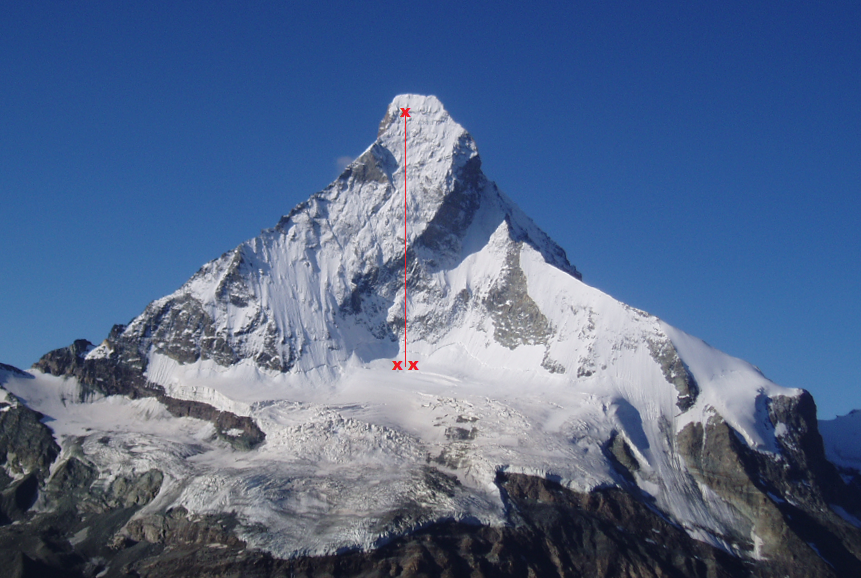La caduta è di circa 1100 metri; Whymper la stima di oltre 1200 (4000 piedi), ma la sua valutazione sembra un po’ esagerata.