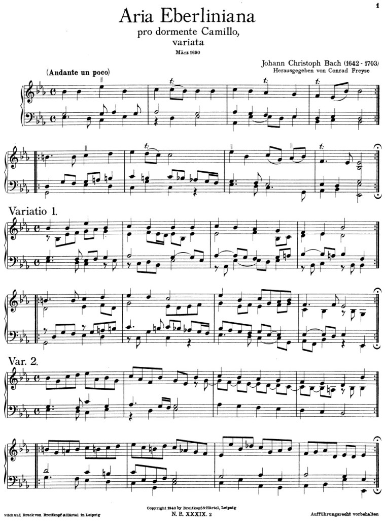 Johann Christoph Bach (1642 - 31 marzo 1703): Aria Eberliniana Pro dormente Camillo variata (1690). Onofrio Della Rosa, clavicembalo.