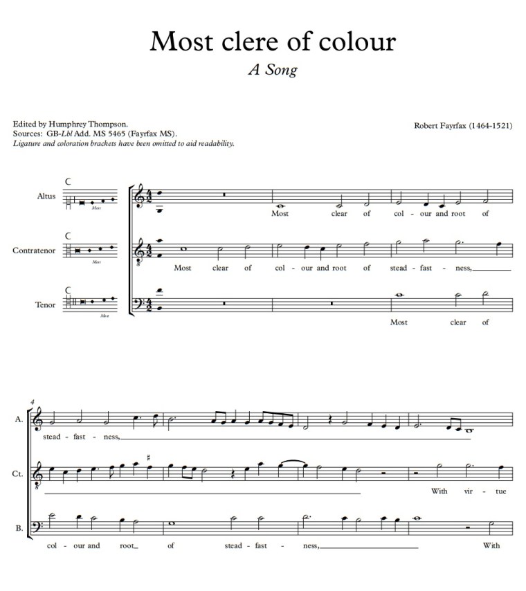 Robert Fayrfax (23 aprile 1464 - 1521): Most clere of colour per 3 voci a cappella. The Hilliard Ensemble.